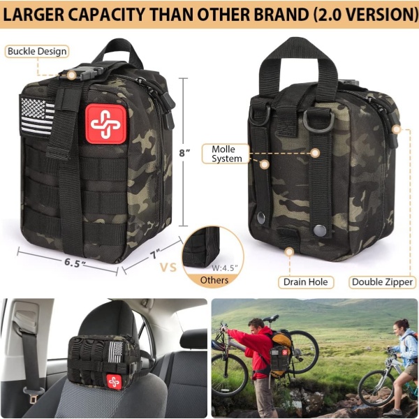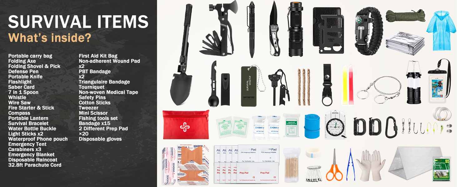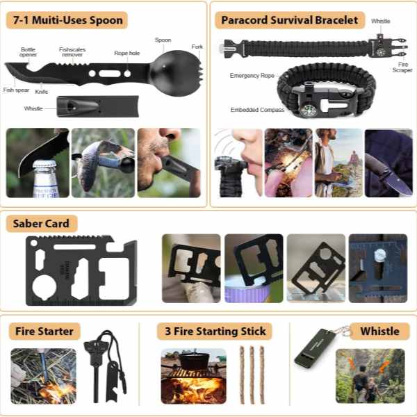 Kit Survival Luaran Terunggul direka bentuk untuk pejalan kaki, berkhemah, pasukan penyelamat dan sesiapa sahaja yang bersedia untuk kecemasan luar yang tidak dijangka. Menggunakan bahan tahan lasak, tahan cuaca dan komponen gred profesional, ini